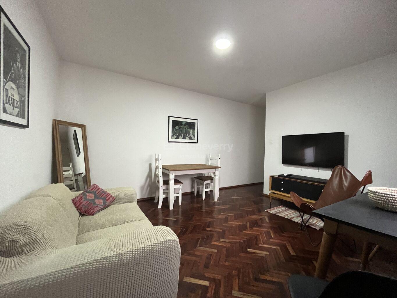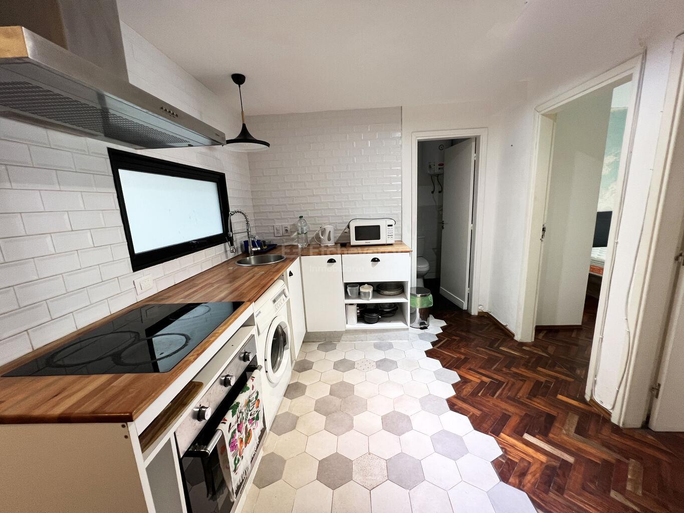 Apartamento de 60m2 ubicado en Charrúa y Jakcson. Es un primer piso por escalera y tiene living-comedor, cocina y baño recientemente reciclados y dos dormitorios.Está amueblado y cuenta también con horno, anafe, lavarropa, heladera y aires acondicionados. Los gastos comunes son $3170 y si se pagan en fecha quedan en $2478.