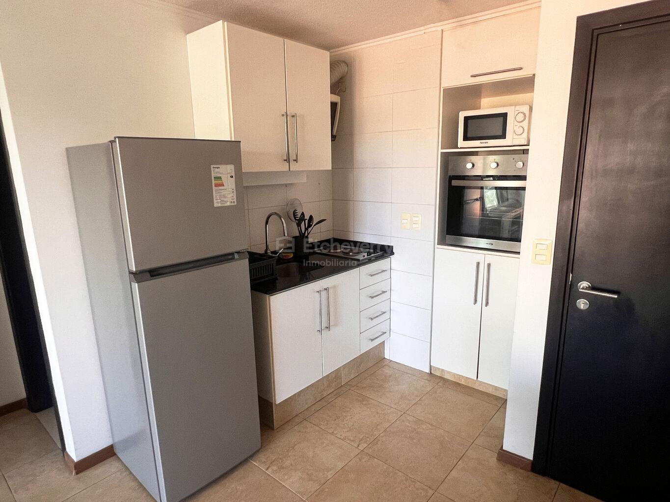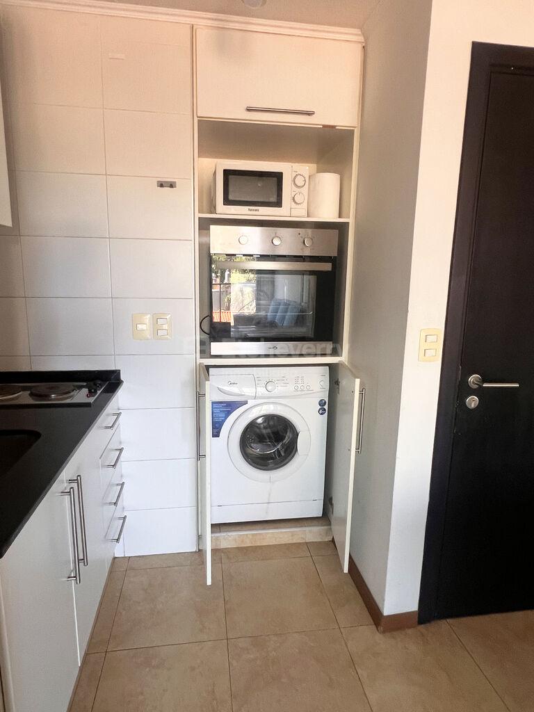 La cocina está bien equipada con vajilla, heladera, horno empotrado, anafe y lavarropa.