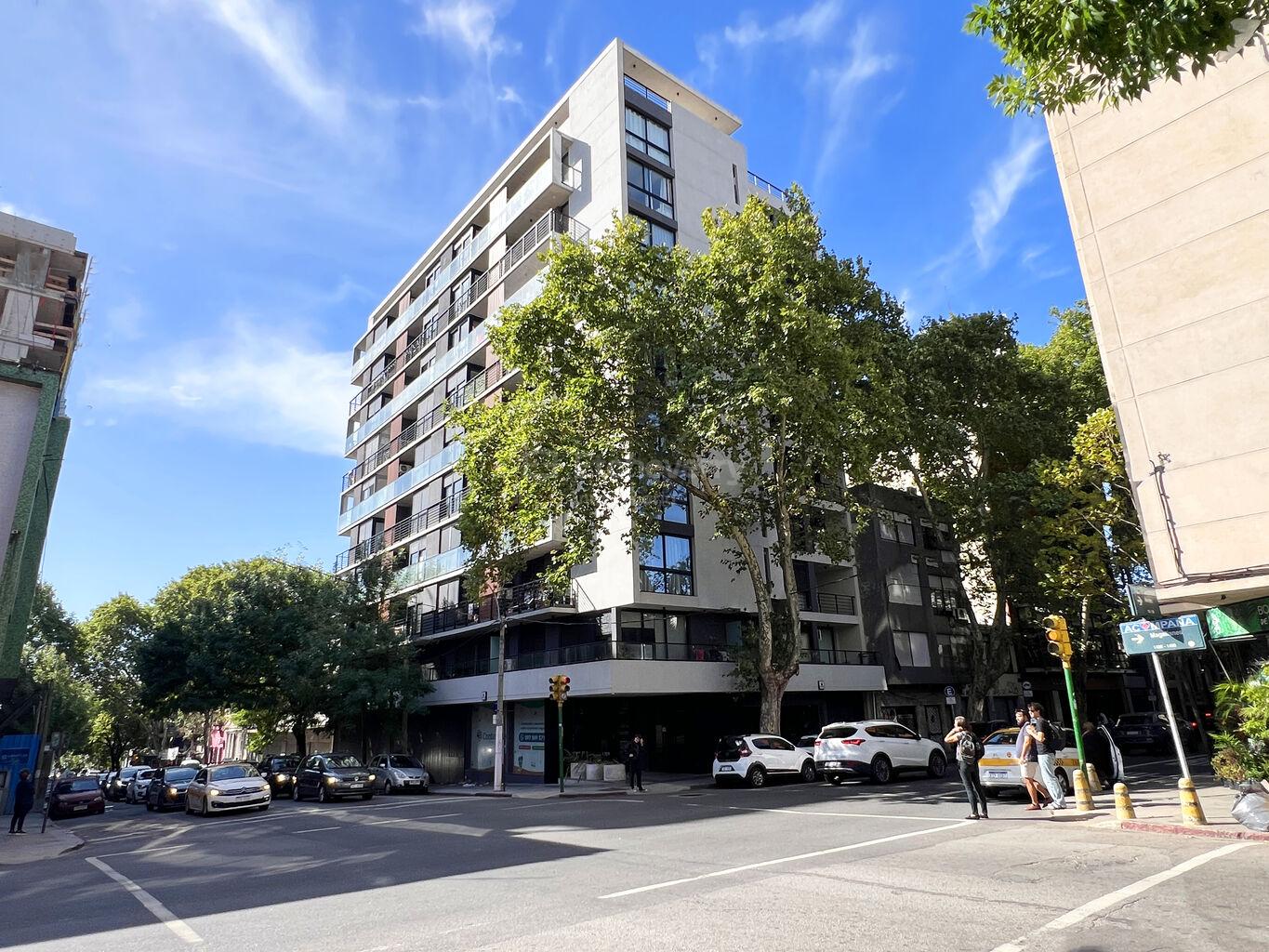 Se ubica en piso intermedio y cuenta con 42 m² internos más casi 5 m² de terraza. Por su condición de esquina, el dormitorio y la terraza orientan al oeste, con muy buena luz natural.